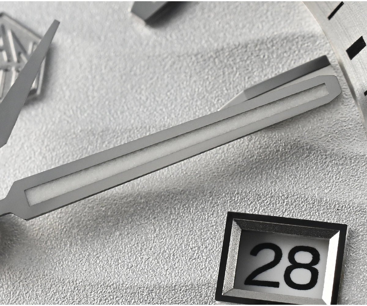 Luminous: BGW-X1 Blue Light, Hands and Markers for white indices version. Orange Light, Hands and Markers for orange indices version